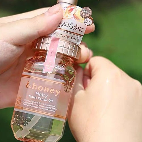 Renew and revive dry, frizzy hair with &honey Melty Moist Repair Hair Oil 3.0, a luxurious Japanese hair elixir created for ultra-soft, shiny locks. This hydrating formula blends three types of honey—Manuka, rose, and raw domestic—with royal jelly, propolis, argan oil, and hydrolyzed honey protein. These deeply moisturizing and strengthening ingredients smooth frizz, enhance elasticity, and leave your hair soft, silky, and radiant.